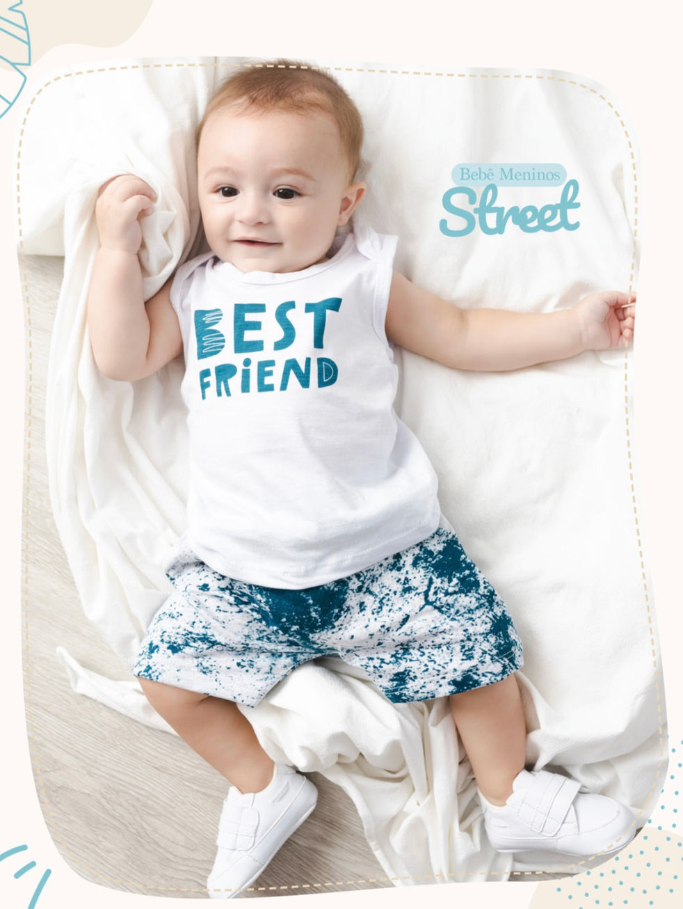 Baby Set (2065) $16.99 . 100% cotton shirt, 98% cotton and 5% polyester shorts. Size M- 6-9 months. G- 9 to 12 months. Colors and details on the poster. front and coast.